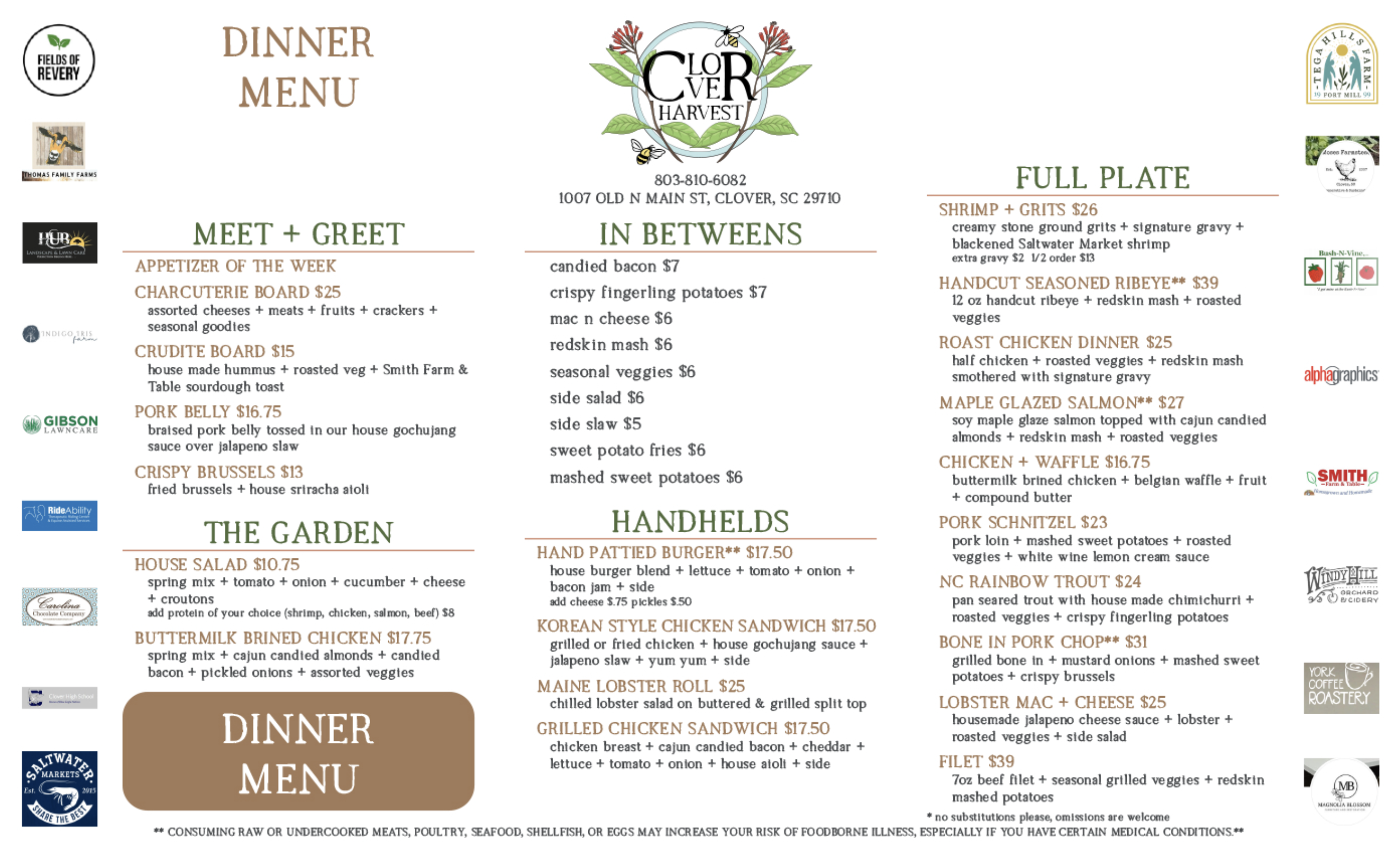 Rooted in Clover, SC, and supported by over a dozen local farms and purveyors, we bring the region’s freshest ingredients—from Smith Farm & Table to Windy Hill Orchard & Cidery—straight to your table. Each bite captures the heart of our farm-to-table partnerships, crafted with love and served in a place where everyone feels like family.